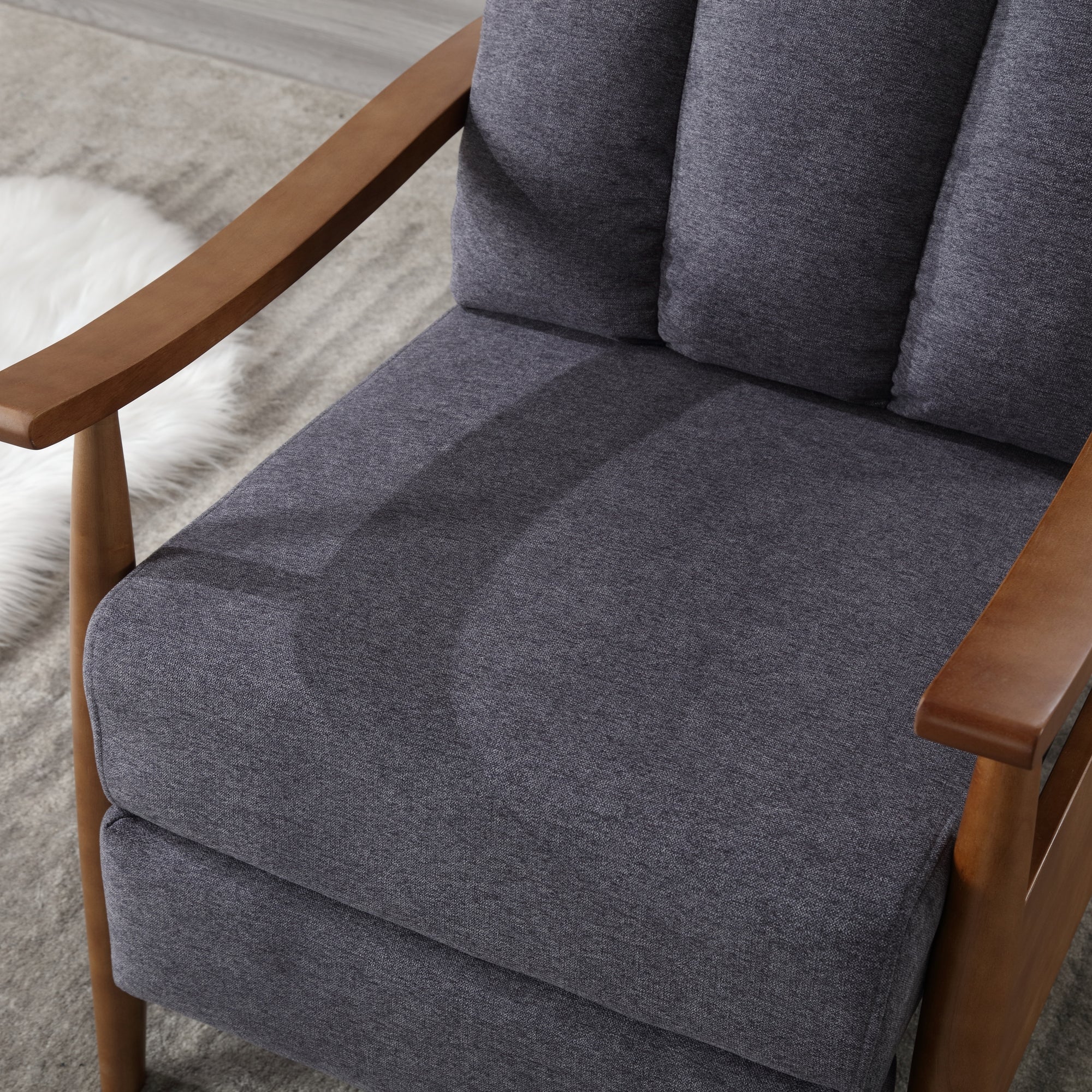 Transform your living area with this sophisticated lounge chair, which perfectly combines functionality and style. Designed with a solid wood frame, it ensures robust durability and sturdy support. The chair is upholstered in luxurious dark grey linen, offering a plush, comfortable seat ideal for relaxation or engaging conversations. Its sleek modern design complements a variety of decor settings, from contemporary to classic, making it a versatile addition to any living room, bedroom corner, or office space. This piece not only promises a stylish update but also provides lasting comfort and appeal.